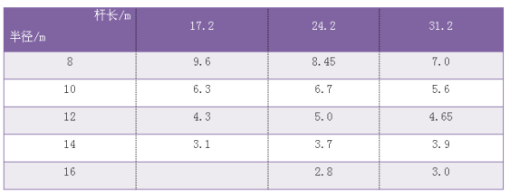 NK250型25t汽車吊額定總起重量表如下(單位:T):
