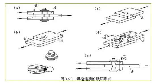e)螺桿因太長(zhǎng)或螺孔大于螺桿直徑而產(chǎn)生彎、剪破壞(板疊厚度≤5d);