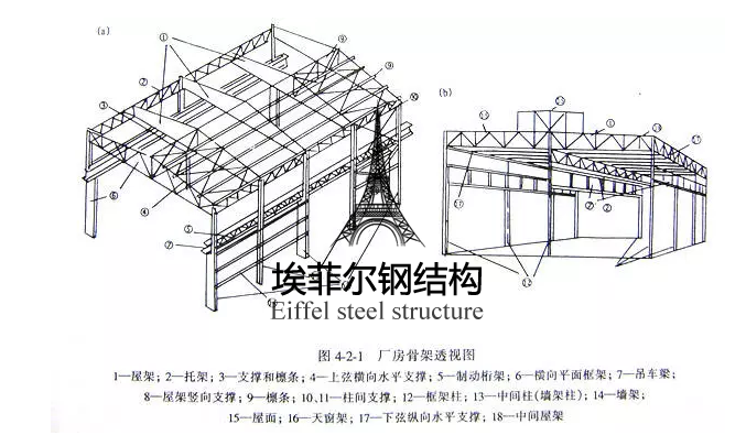 單層廠房鋼結(jié)構(gòu)一般是由檁條、天窗架、屋架、托架、柱、吊車梁、制動梁(或桁架)、各種支撐以及墻架等構(gòu)件組成的空間剛性骨架。