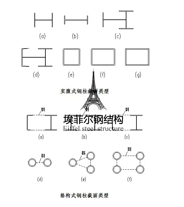 柱按柱的截面形式分為:實腹式柱和格構(gòu)式柱。