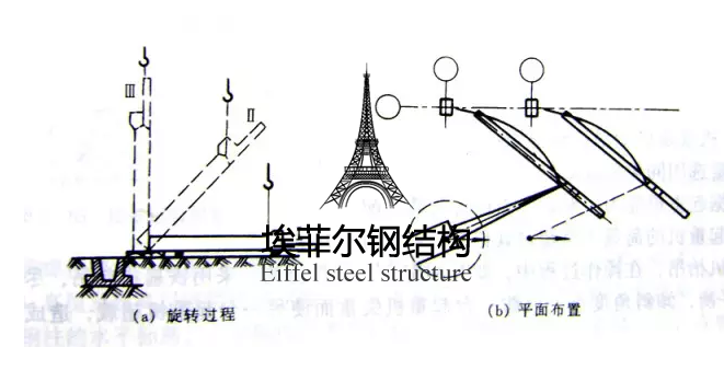 1). 旋轉(zhuǎn)法:鋼柱運到現(xiàn)場,起重機邊起鉤邊回轉(zhuǎn)使柱子繞柱腳旋轉(zhuǎn)而將鋼柱吊起。
