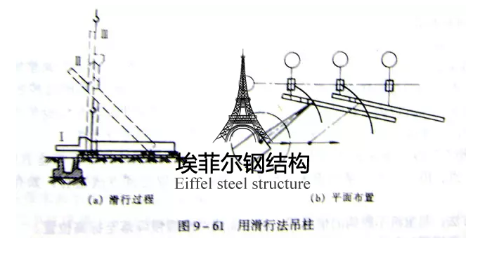 2). 滑行法:單機或雙機抬吊鋼柱,起重機只起鉤,使鋼柱腳滑行而將鋼柱吊起。為減少鋼柱腳與地面的摩擦力,需在柱腳下鋪設(shè)滑行道。