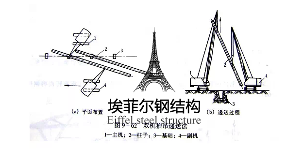 3). 遞送法:雙機抬吊,為減少鋼柱腳與地面的摩擦力,其中一臺為副機吊點選在鋼柱下面,起吊柱時配合主機起鉤,隨著主機的起吊,副機要行走或回轉(zhuǎn),在遞送過程中,副機承擔了一部分荷重,將鋼柱腳遞送到柱基礎(chǔ)上面,副機摘鉤,卸去荷載,此刻主機滿載,將柱就位。