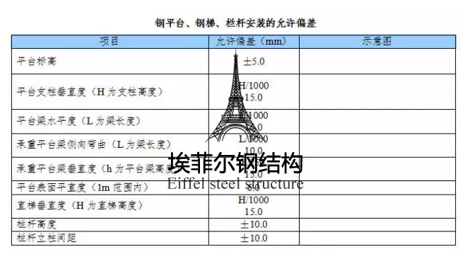 (4) 平臺、梯子和欄桿安裝的允許偏差應(yīng)符合下表規(guī)定。
