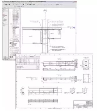 Revit Structure設計圖形和信息可以重新用到Robobat RCAD等建筑詳圖設計解決方案中。如圖所示。請注意鋼結構詳圖設計應用中添加的更多制造信息。