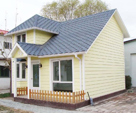 建房施工過程中,將輕型鋼架焊接固定在地基上,然后,用普通鋸條在板材上把門窗開好,再把各種板材依次鑲嵌在鋼架上,進行膠合固定,一幢建筑面積600多平方米的三層中型別墅,只需要12個工人,用不到一個月的時間就可完成房屋主體建筑,并且完成大部分外墻裝飾和室內(nèi)裝飾。建造施工只需要普通建筑施工工期的六分之一,并且在整個施工建造過程中,由于建筑材料的集合利用,加上材質(zhì)輕,簡化了煩瑣的施工工序,不必使用大型施工機械,大大減輕了工人的勞動強度。