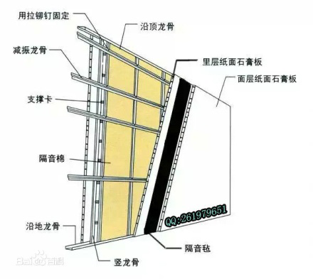 輕鋼別墅在內(nèi)外墻及樓蓋擱柵間填充玻璃棉,有效阻止了通過空氣傳播的音頻部分,而對于通過固體傳播的沖擊聲,作如下構(gòu)造處理:對于分戶墻用二道墻柱構(gòu)成帶有中間空隙的二道墻體;而對于吊頂用的固定石膏板的小龍骨,用帶有小切槽的彈性構(gòu)造以有效減少樓層間的固體聲傳播。