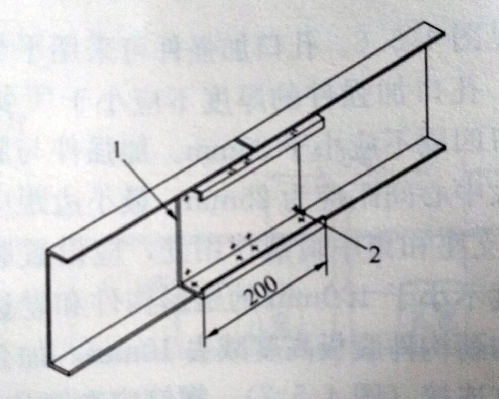 7、在構(gòu)件支座和集中荷載作用處,應(yīng)設(shè)置腹板加勁件。加勁件可采用厚度不小于1.0mm的槽形構(gòu)件和卷邊槽形構(gòu)件,且其高度宜為被加勁構(gòu)件腹板高度減去10mm。加勁件與構(gòu)件腹板之間應(yīng)采用螺釘連接(圖3)。螺釘應(yīng)布置均勻。