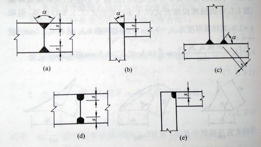 S為坡口深度,即根部至焊縫表面(不考慮余高)的最短距離(mm);α為V形、單邊V形或K形坡口角度。