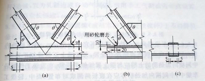 2、桿件的填板當(dāng)用焊縫連接時(shí),焊縫起落弧點(diǎn)應(yīng)縮進(jìn)至少5mm(圖1c),重級工作制吊車桁架桿件的填板應(yīng)采用高強(qiáng)度螺栓連接。