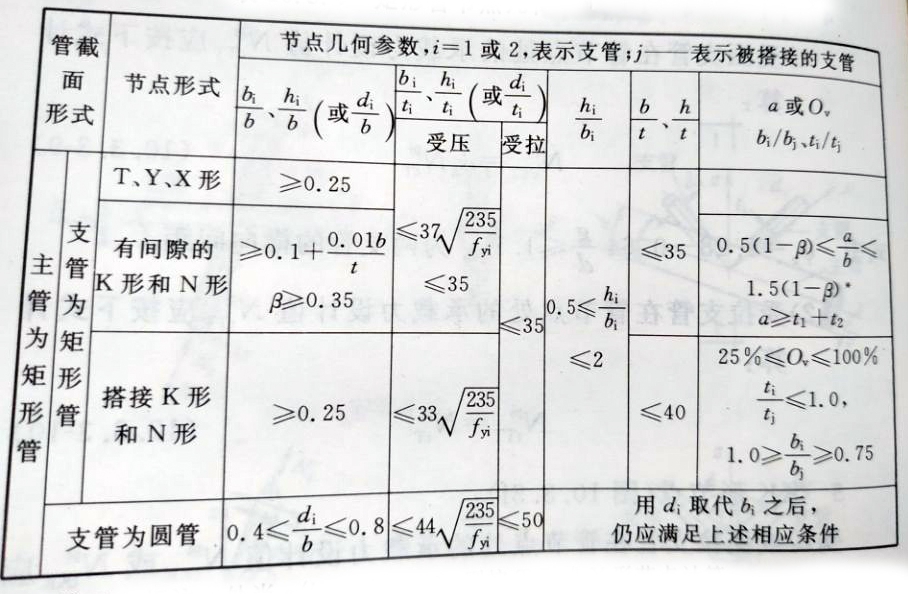 表10.3.4 矩形管節(jié)點(diǎn)幾何參數(shù)的適用范圍
