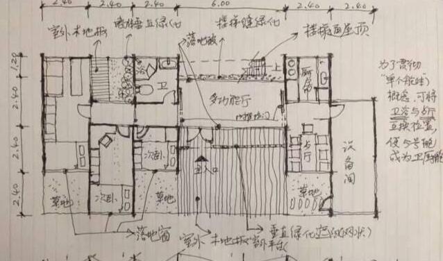 有了空地之后,大叔馬上就開始了準(zhǔn)備工作,比如這個是他繪制的草圖,雖然粗看有些潦草吧,但是琢磨一下,還是粗中有細(xì)的,各個區(qū)間規(guī)劃的非常完善,讓人一目了然。