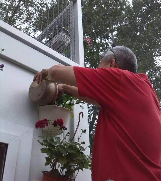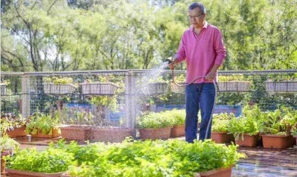 這個花園中,大叔搞得灌溉系統(tǒng),細(xì)細(xì)的水花噴涌出來,就好像炊煙裊裊的有霧,讓人有種錯覺,仿佛來到了人間仙境。