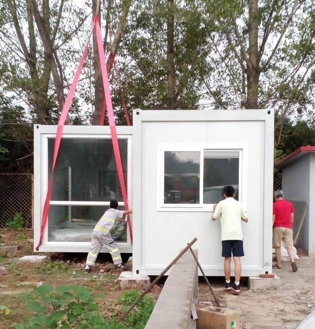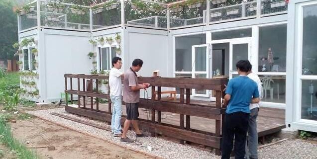 這個是吊機(jī)運來的集裝箱,一共有6個,每個約15平的樣子,六個相加,大概就是一套九十平的房子。當(dāng)然,這些都是沒有包括庭院的大小,如果相加,差不多有兩百平,也算得上是一套豪宅了。至于成本,每個集裝箱的價格大約在一萬左右。
