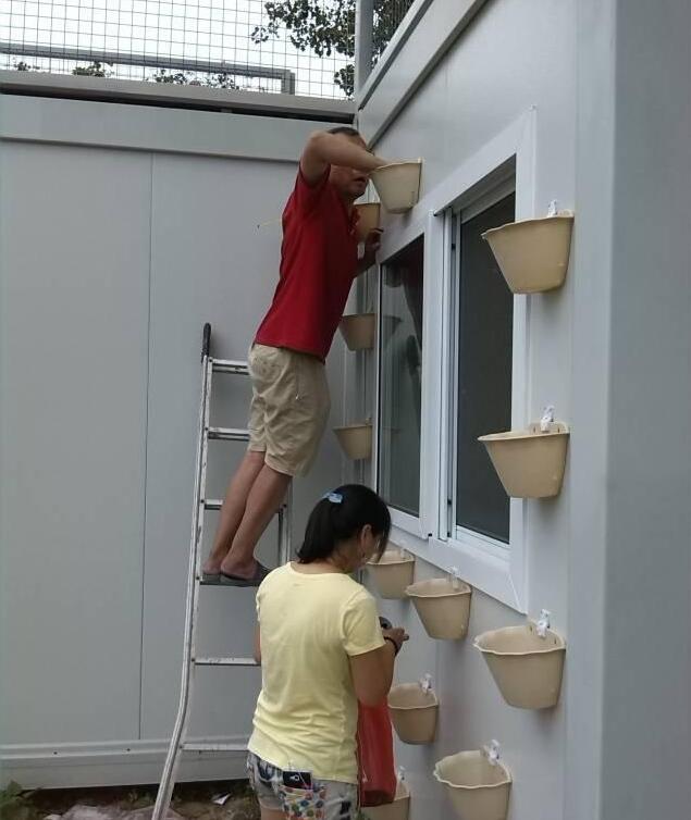 除了小路,還需要美化環(huán)境,就在集裝箱的外面安裝了一個個花架,等花草綠植長出來,效果非常驚艷。