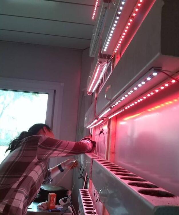 來到廚房,這里做了一個水管蔬菜培育槽,效果還不錯。