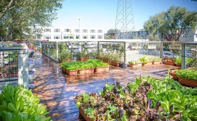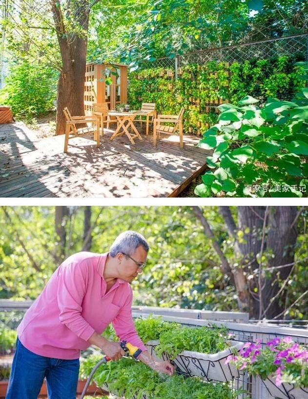 這個是院子效果,防腐木板搭建的露臺上,擺放了各種蔬菜培育器,種上一些瓜果蔬菜,不僅實用,還美得像一個花園。