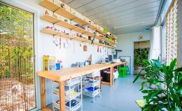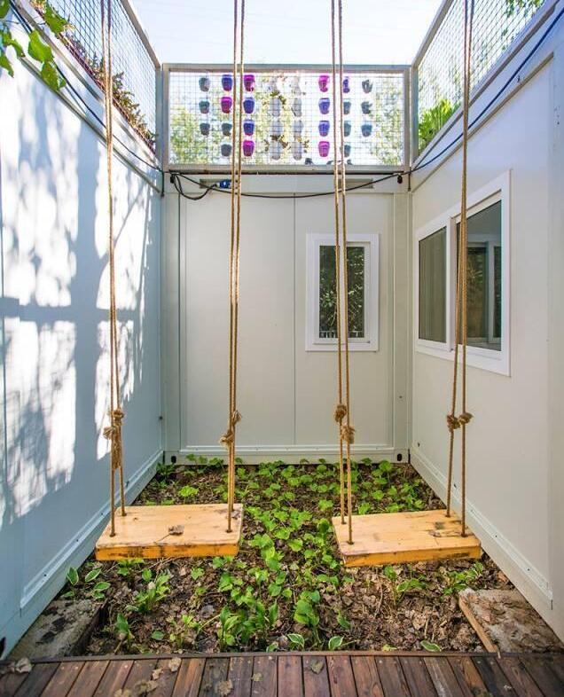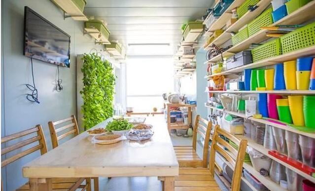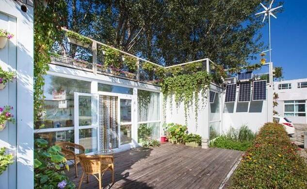 生活氣息慢慢的環(huán)境,一同構(gòu)成了這個家。這個由木板搭建起來的露臺,特別適合放松休息。同時,集裝箱上面的綠植,對整個建筑也起到了美化效果,單是看著就像一棟小別墅一樣,很是氣派。