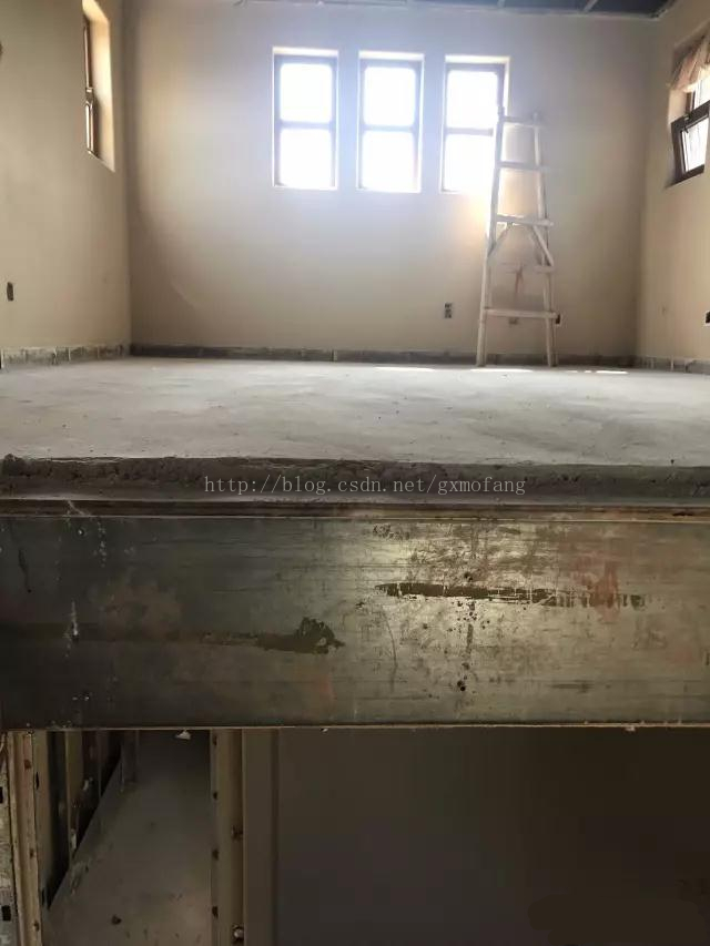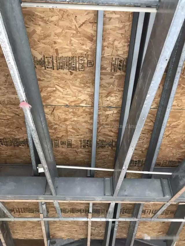 該別墅的房主要重新裝修,屋內(nèi)除了輕鋼結(jié)構(gòu)體系以外的所有附屬系統(tǒng)已經(jīng)全部拆除。拆掉吊頂龍骨的樓板桁架裸露在外,可見沒有一絲銹跡,經(jīng)過15年的時間質(zhì)量沒有發(fā)生任何改變。
