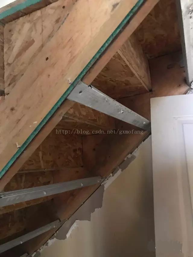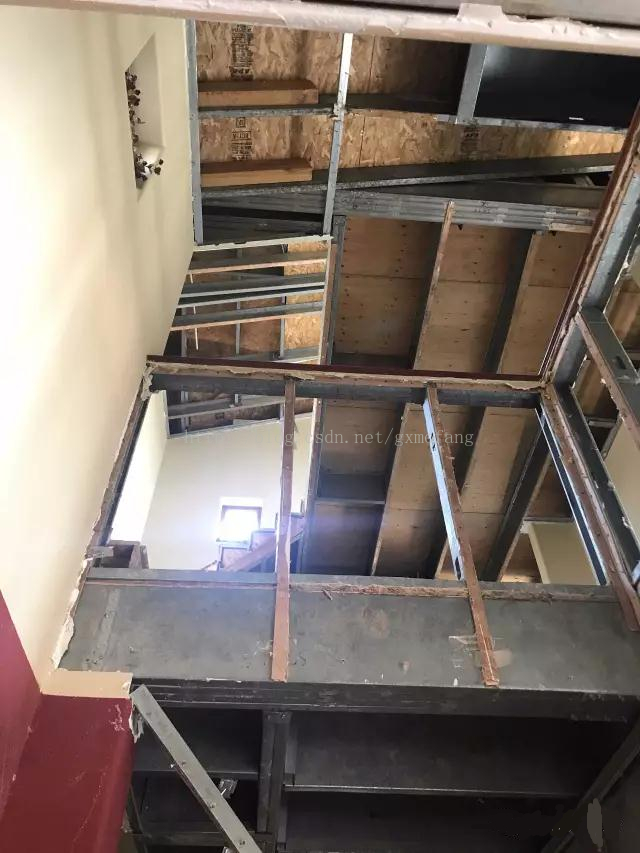 被拆掉維護(hù)系統(tǒng)的墻體龍骨