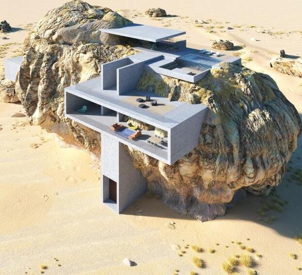 “巖石中的房子”設(shè)計靈感來自沙特阿拉伯馬丹薩利赫城巖壁上的墓室。這位在上海的外籍建筑師Amey Kandalgaonkar闡釋說:“考慮到沙特阿拉伯馬丹薩利赫城墳?zāi)惯z址在巖石上的復(fù)雜性,用一種更簡潔的平面和立體以獲得視覺上的平衡是必要的。我著手在3D軟件里創(chuàng)建巖石的模型,這是一個雕刻的過程。后來當將房子嵌入巖石中時,我努力使它在水平視角的效果最小化,只有在鳥瞰時,干預(yù)的真實程度才得以顯現(xiàn)。”小編我非常欣賞這樣的建筑設(shè)計,真可謂堅固、舒適、奇特引人!
