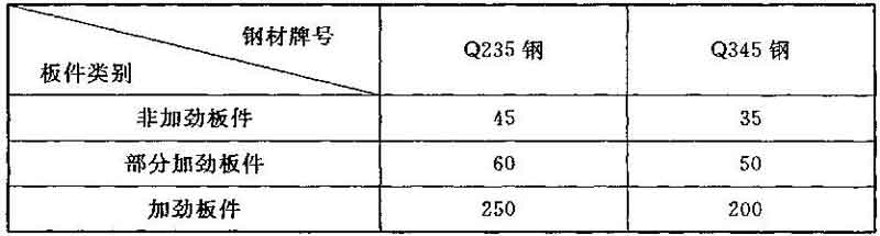 1 構(gòu)件中受壓板件的最大寬厚比應(yīng)符合表4.3.2的規(guī)定。