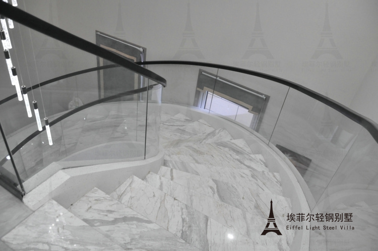 面積493平米三層輕鋼別墅落成-挑空客廳,螺旋樓梯盡顯現(xiàn)代風(fēng)格