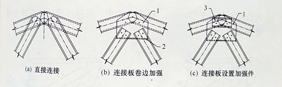 查看詳情一、屋脊處無(wú)集中荷載時(shí),屋架的腹桿與弦桿在屋脊處可直接連接(圖1a);屋脊處有集中荷載時(shí)應(yīng)通過(guò)連接板連接(1bc)。當(dāng)采用連接板連接時(shí),連接板宜卷邊加強(qiáng)(圖1b)或設(shè)置加強(qiáng)